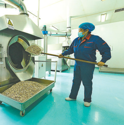 位于大屯鎮的承德奇灤中藥飲片加工有限公司員工使用設備加工產品。竇新雨 攝