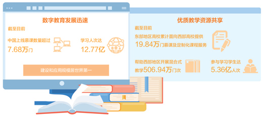 我國近年來大力推進國家教育數字化戰略行動。截至目前,上線慕課數量超過7.68萬門,學習人次達12.77億,建設和應用規模居世界第一,教育的公共服務能力顯著增強。
