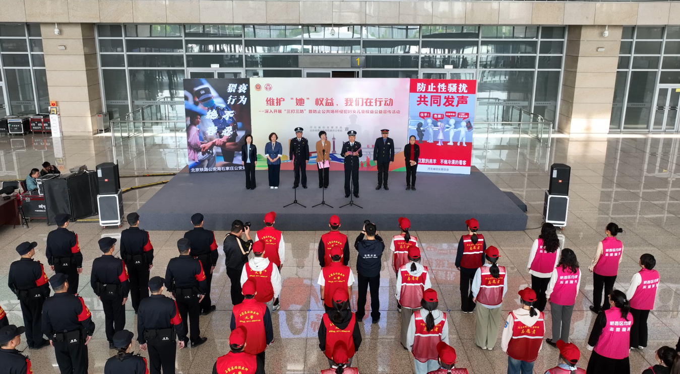 為進一步增強廣大婦女、兒童出行途中自我保護意識和能力,近日,北京鐵路公安局石家莊公安處聯合河北省婦女聯合會在石家莊站共同開展“維護‘她’權益,我們在行動”——深入開展‘三打三防’暨防止公共場所侵犯婦女兒童權益公益宣傳活動。