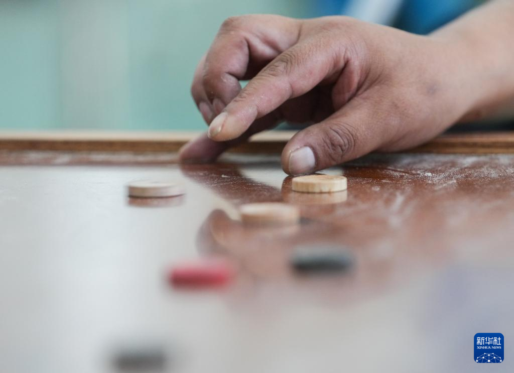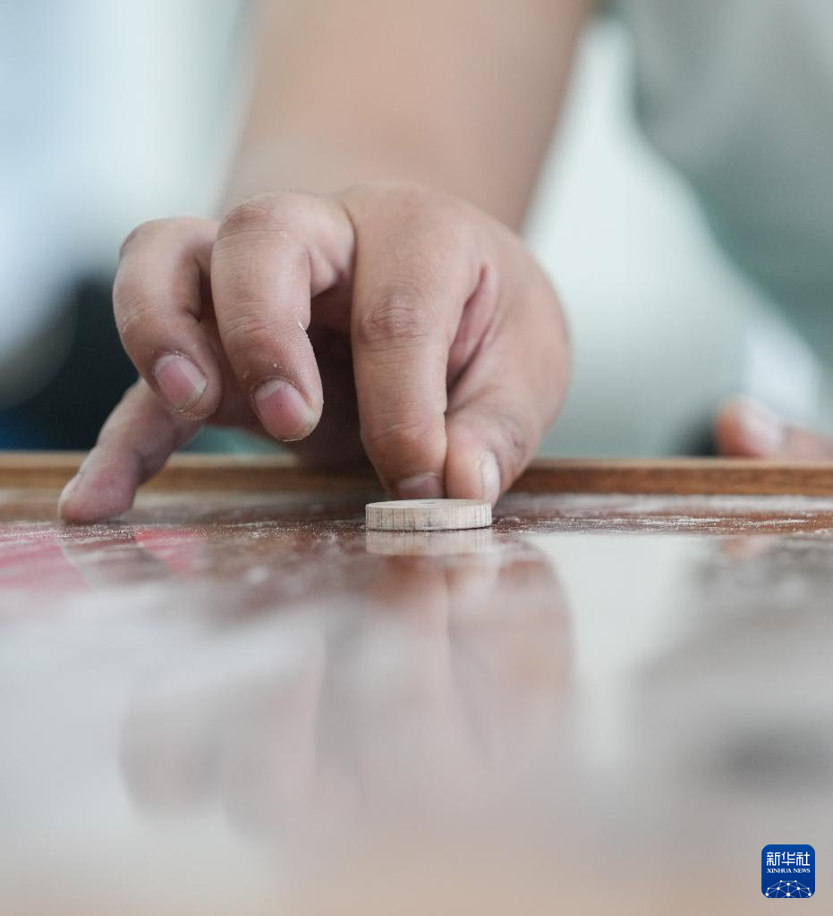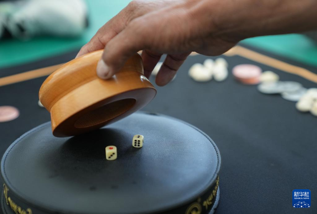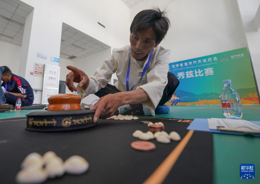 6月24日,達孜隊選手邊巴在秀茲比賽中擲骰子。新華社記者 晉美多吉 攝