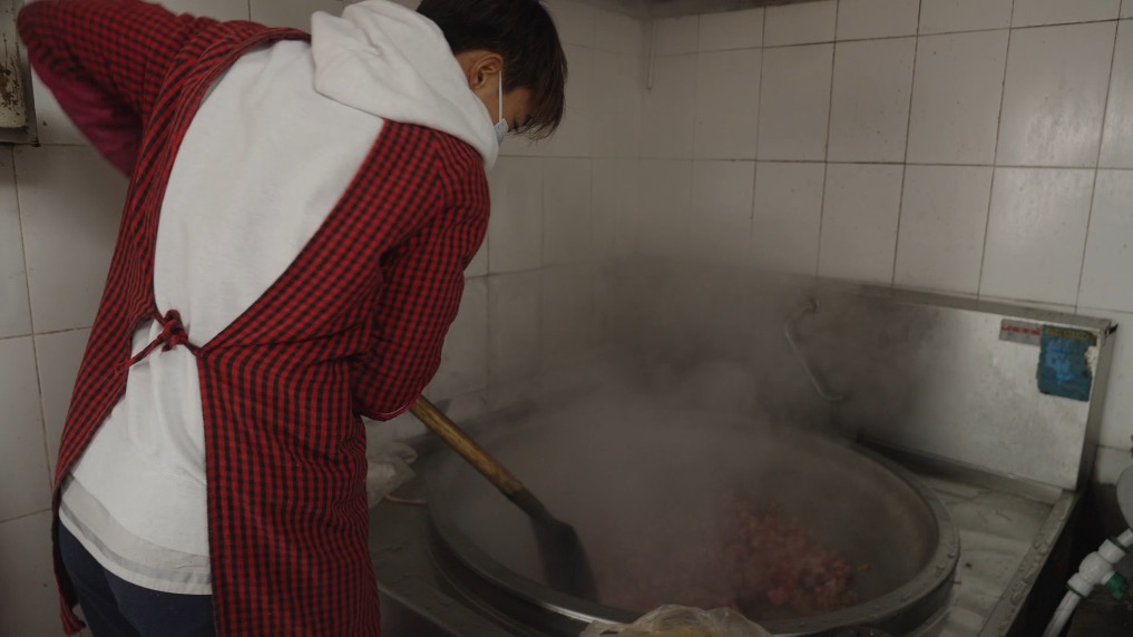 除了日常訓練,王霜還親自下廚為全校師生做飯!拔彝ο矚g做飯,以前也經常做三四個人的飯菜。但兩百多人吃,要用這么大的鍋和這么大的勺,還真累呀!蓖跛贿吶嘀觳,一邊笑著說。幾天的時間,王霜已經成為孩子們親近和信賴的“大姐姐”。