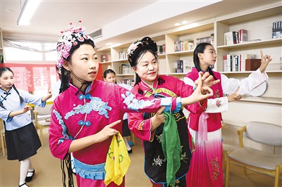 暑假期間,山東省濱州市博興縣博昌街道在各個社區設置具有公益性質的“濱濱學堂”,邀請呂劇、剪紙、草柳編等當地民間藝人走進學堂,免費指導假期中的社區兒童學習各種傳統文化。