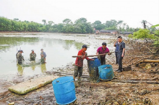 圖②:執行干警督促凌某捕魚清塘。