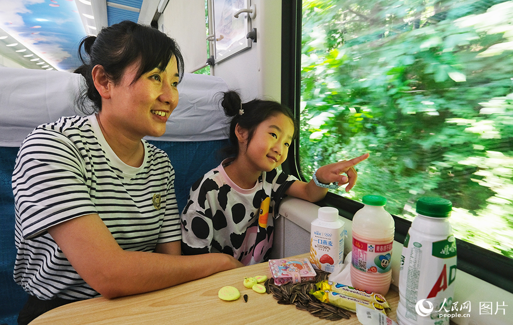 7月10日,乘坐通化至集安4347次列車的旅客欣賞沿途風景。楊寶森 攝