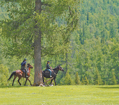 游客在哈巴河縣的草原上騎馬游玩。新華社記者 阿曼 攝