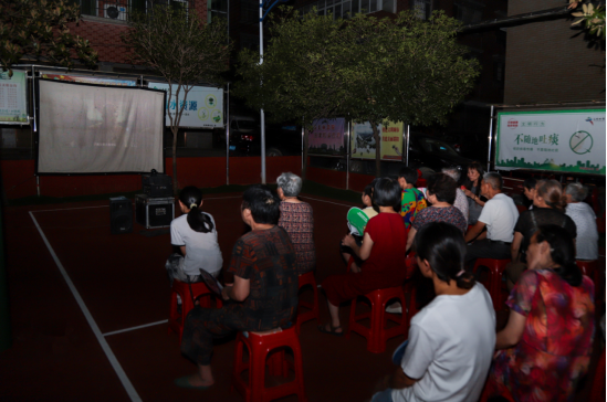 社區廣場上,正在播放著經典老電影,人們手搖蒲扇看得津津有味。志愿者穿梭于人群之中,為觀影居民送上一塊塊冰涼的西瓜,驅散夏日炎熱,溫暖著群眾的心。