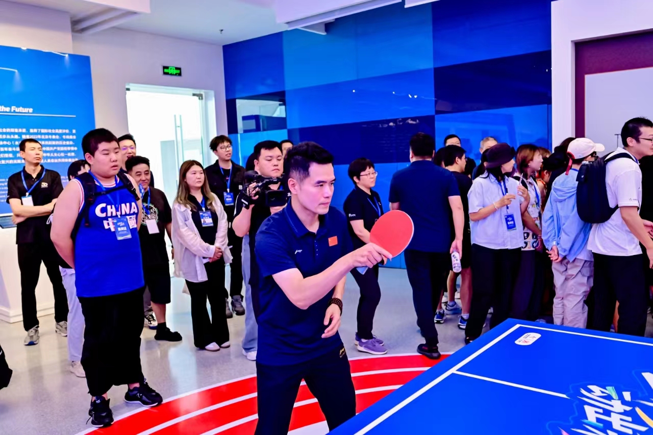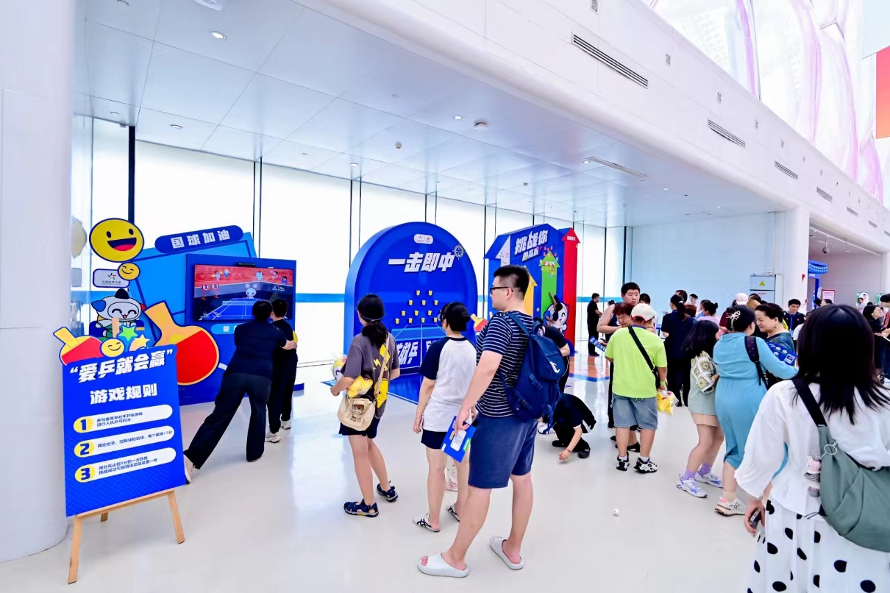 除了能與世界冠軍對戰,現場的互動活動區還設置了乒乓球人機對戰、乒乓球趣味投壺、摸高挑戰等豐富的游戲項目和體質監測服務提升大眾參與體驗,現場氛圍熱烈,笑聲不斷。