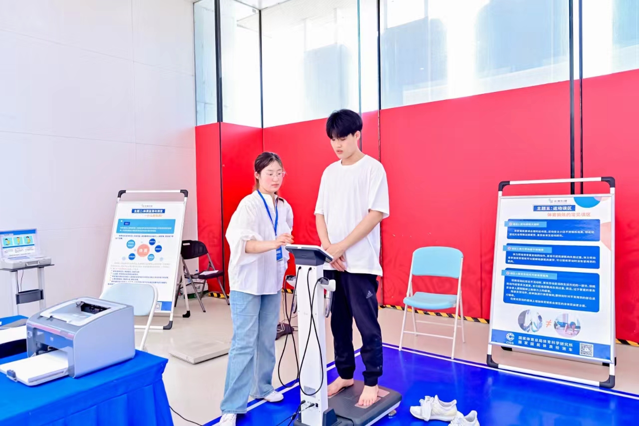 國家體育總局體育科學研究所的專家也帶來5套體質監測裝備為現場觀眾進行握力、縱跳、平衡、心肺功能、體脂等測試!霸O備測出來的數據很精準,開出來的運動處方和我健身私教給的差不太多,專家給的指導也特別專業!眮硭⒎接斡镜慕∩韾酆谜啐R子龍來到活動區打卡,收獲一份專業的運動處方。