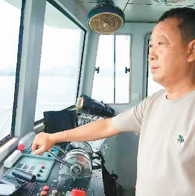 20分鐘后,檢查好船舶的性能后,老楊從船艙爬到了甲板上。此時,東方既白,幾只野鳥從水面掠過,遠處的青山也露出了真容。