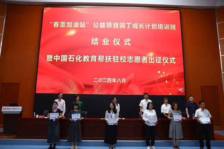 8月18日至23日,“春蕾加油站”公益項目首期園丁成長計劃培訓班暨教育幫扶駐校志愿者交流活動在山東省東營市勝利油田黨校(培訓中心)舉辦。來自全國50余所“春蕾加油站”項目學校的教師代表和中國石化集團各分公司的幫扶干部共計120余人參加培訓。中國兒童少年基金會副秘書長朱東云,勝利石油管理局黨委副書記、紀委書記、監事魏永軍和中國石化集團有關部門負責同志出席培訓班結業儀式。