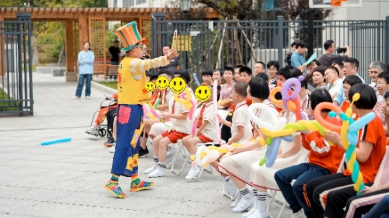 在秋日的暖陽下,本次活動帶來了一場青春陽光、童趣盎然的舞臺文藝演出。歌曲《孤勇者》、啦啦操、小丑表演,精彩的節目為大家帶來了歡聲笑語。院內孩子們觀看節目之余,還上臺表演大合唱《數鴨子》和獨舞節目,展現出飽滿的精神面貌。同時,浙江福彩向瑞安市社會福利院、溫州螺絲廠過境路老人公寓捐贈了總計價值6萬元的慰問品,并送上真摯的問候。