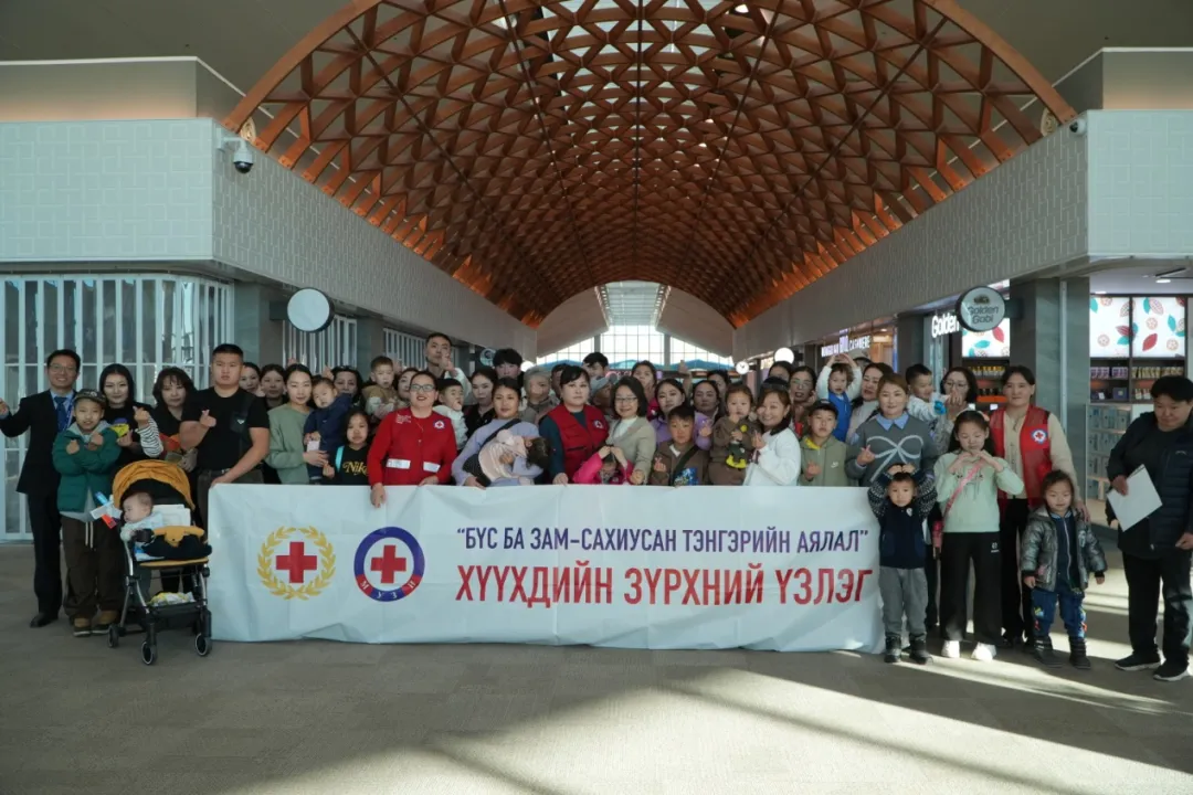 中華人民共和國駐蒙古國特命全權大使沈敏娟、蒙古國紅十字會副秘書長巴雅爾其木格在蒙古國首都烏蘭巴托機場將患兒們送上飛往北京的航班。