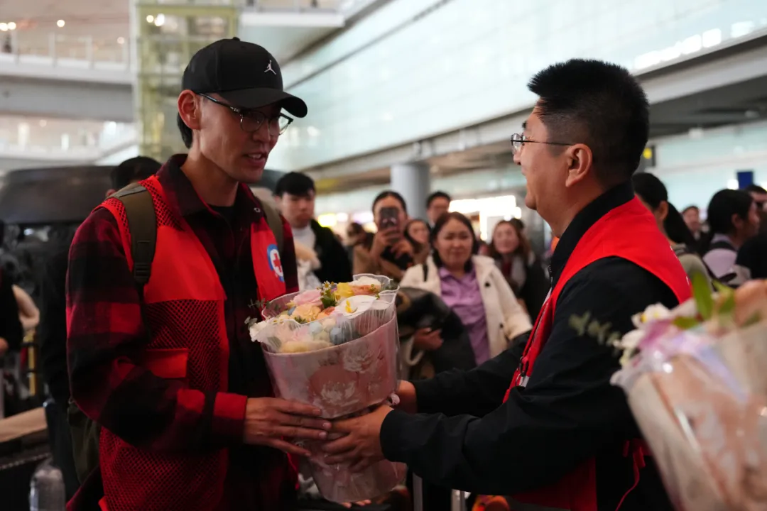 中國紅十字基金會副秘書長周魁慶、中國國際航空股份有限公司地面服務部生產運行副總經理曹新革及商務委員會華北營銷中心副總經理王立鵬、首都醫科大學附屬北京安貞醫院小兒心臟中心主任王強等到機場迎接。