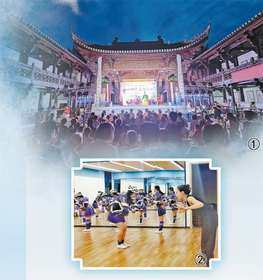 圖①:新青年歌舞團在蕭山區三頭村文化禮堂演出。朱凌海 攝