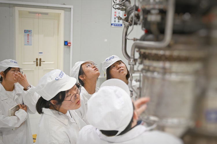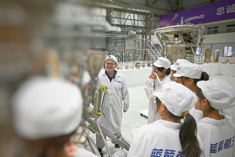 研學營首站來到了藍箭航天湖州發動機智能制造基地。航天工程師對照火箭發動機實體,向女孩們講解火箭發動機工作原理,配合關于液氧甲烷的趣味小實驗,開展了一堂生動的科技課。