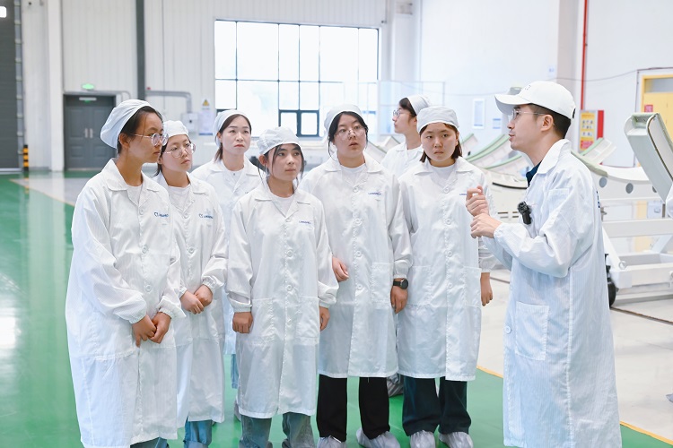 嘉興藍箭航天火箭制造基地集設計仿真、試驗檢測、智能制造于一體,火箭研發、試驗、各個部件的裝配和外層的涂裝都在此處完成。在藍箭航天工程師陪同下,春蕾女孩們觀摩了火箭吊裝過程,聽工程師講解焊接和火箭結構、總裝的原理、過程。