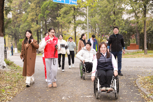 活動結束后,在校園文化講解志愿者的陪同下,殘奧冠軍們來到優美的未名湖畔,一同游覽秋日燕園,欣賞未名湖的深秋之景和博雅塔的巍峨挺立,感受北大優美的校園景色和深厚的歷史底蘊,交流友好互助的志愿精神。