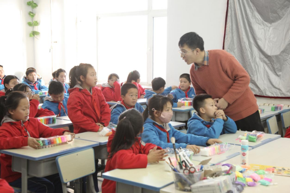 在捐贈儀式結束后,黑龍江省福彩中心黨員志愿者們與學生們一起參加了豐富多彩的課程活動。200余名留守兒童分A、 B班同時開展特色課程,A班為繪畫課程,由專業美術老師為學生帶來一節《走近大師——梵高的星月夜》水粉課; B班是泥塑課程《彩色粘土》,由學校老師帶領孩子上一節30分鐘的彩色粘土課程。此外,還策劃了讓孩子們根據原材料自己動手DIY一杯奶茶、為留守兒童舉行生日party、由小丑為留守兒童表演扎氣球等活動,帶領孩子們度過了儀式感滿滿的“快樂星期五”。