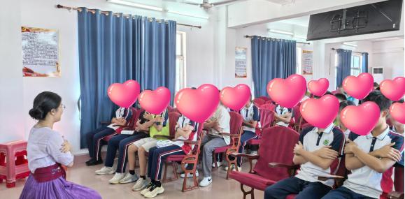 “育潤心—護未來”困境兒童心理輔導項目。圖為開展心理教育團體輔導課,困境兒童體驗蝴蝶拍緩解情緒。