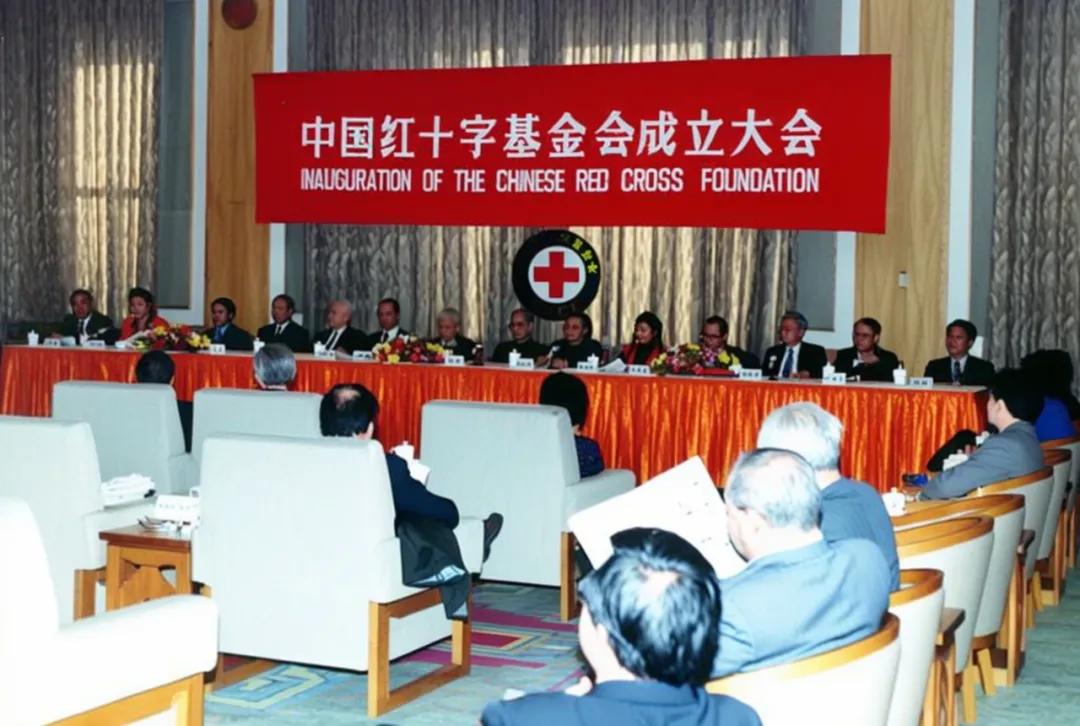 1994年3月15日,中國紅十字基金會經民政部批準成立。圖為1996年中國紅十字基金會成立大會