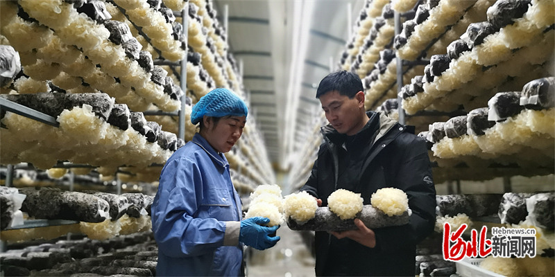 1月6日,在鹽山縣韓集鎮后韓村銀耳智能種植小區,工作人員正在查看銀耳長勢。戴紹志 攝