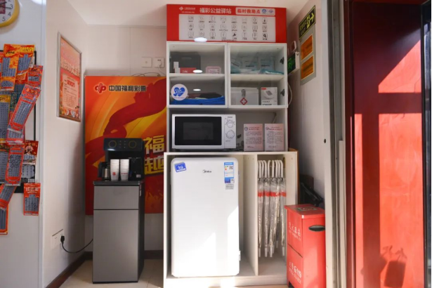 福彩“公益驛站”是集彩票銷售、公益宣傳、便民服務等多項服務于一體的新型社會化公益便民場所,天津福彩“公益驛站”統一形象標識,方便過往市民找到驛站并了解驛站內的免費服務。驛站內配備飲水機、微波爐、血壓儀、老花鏡、針線包等物品,并提供應急藥品、應急雨具、手機充電等多項服務,不僅豐富了銷售網點的功能,也搭建了福利彩票踐行公益、履行責任、傳播文化的新型服務平臺。