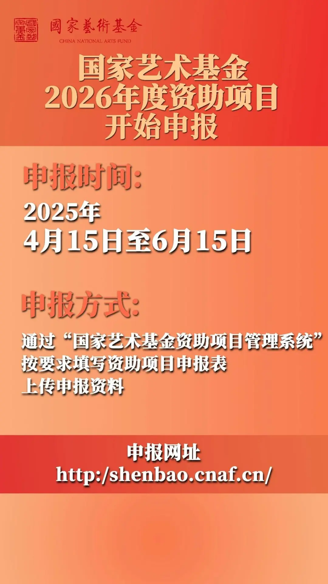 國家藝術基金2026年度資助項目開始申報
