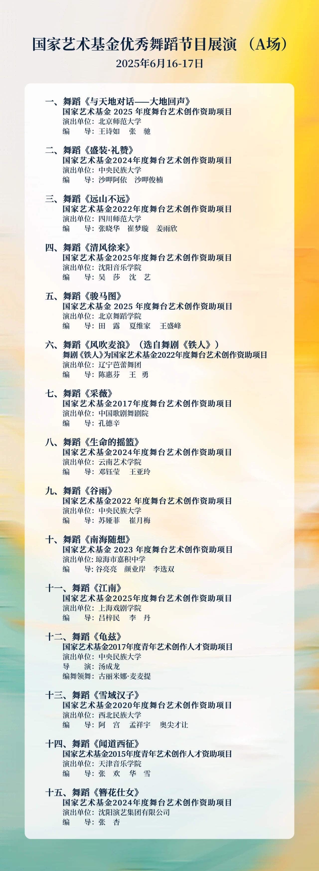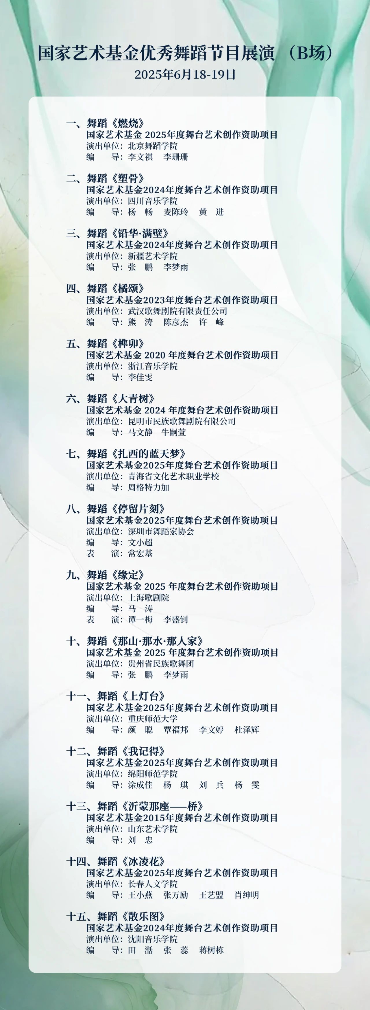 “為人民綻放——國家藝術基金優秀舞蹈節目展演” 節目單