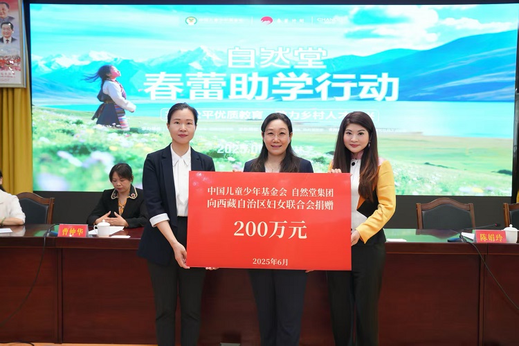 活動現場,中國兒基會再次攜手自然堂集團向西藏自治區婦聯捐贈200萬元,用于資助當地350名家庭困難、品學兼優的高中、大學女生完成學業。